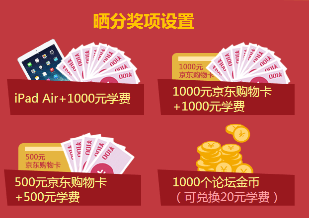 晒分有奖--赢取iPad Air、京东购物卡、论坛金币、学费