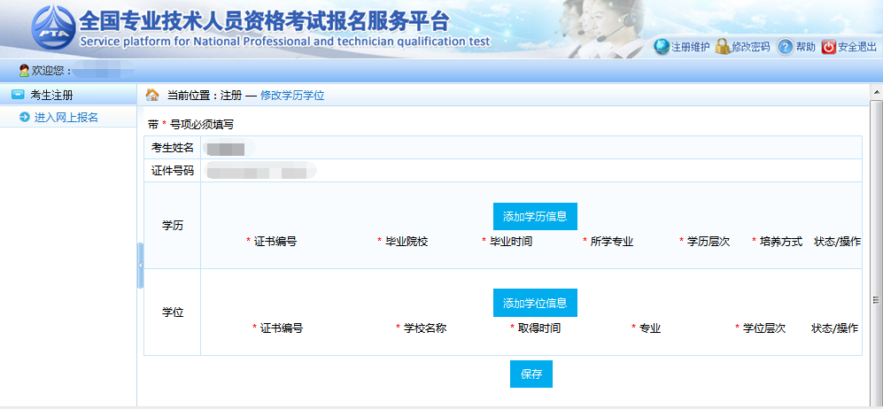 4.请如实准确填写学历、学位信息,保存后无法删除。