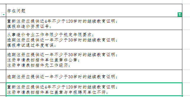在审查意见公示中不符合条件的原因,“继续教育”存在问题的人数最多,主要是: