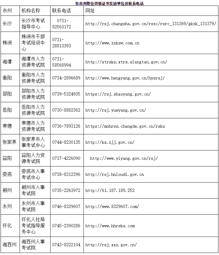 职业资格证书发放、邮寄收费标准等相关问题请咨询当地人事考试机构,具体联系方式见附表。