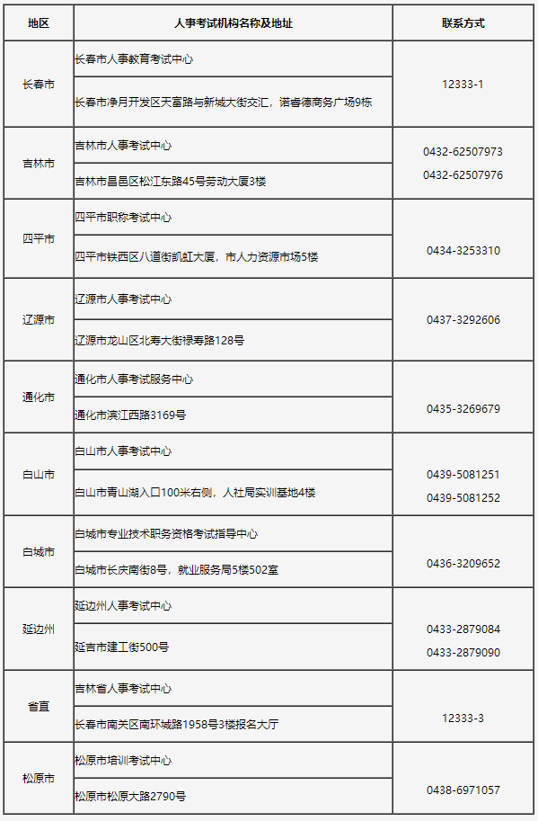 附件:吉林省人事考试机构现场人工核查地点及联系方式