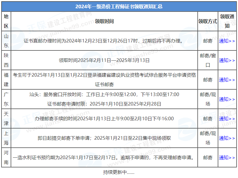 - · 2024年新疆兵团一级造价工程师职业资格考试证书已开始领取