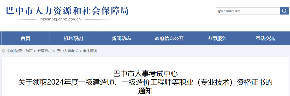 2024年度一级建造师职业资格证书、一级造价工程师职业资格证书、初(中)级经济专业技术资格证书、2024年下半年计算机技术与软件专业技术资格证书、翻译专业资格证书已到巴中,考生可通过以下方式前来领取。
