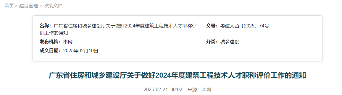 广东省2024年度建筑工程技术人才职称评价工作的通知已发布,官方通知内容如下: