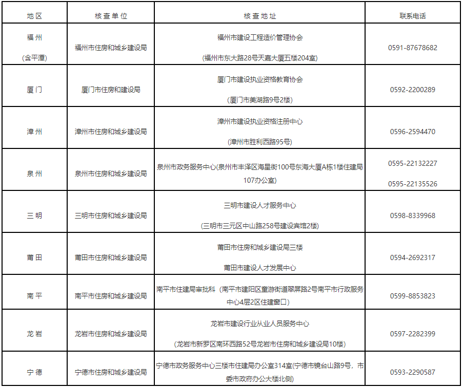 (八)考后现场核查时间、证书发放时间及方式以“福建省住房和城乡建设厅http://zjt.fujian.gov.cn/—行业管理—执业注册—资格考试”栏目通知为准。