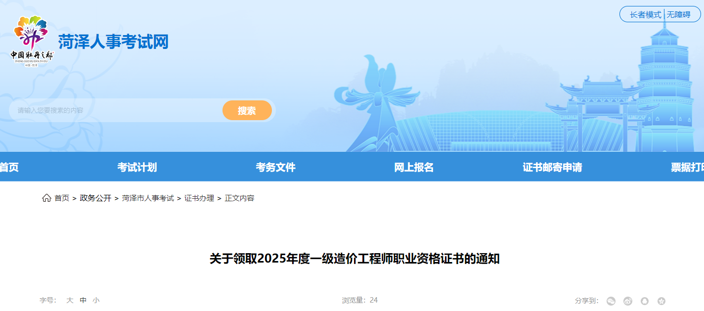 山东菏泽市2025年度一级造价工程师考试合格证书领取通知已发布,详情如下: