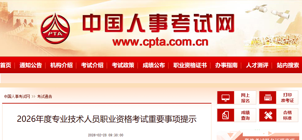 2026年度专业技术人员职业资格考试重要事项提示