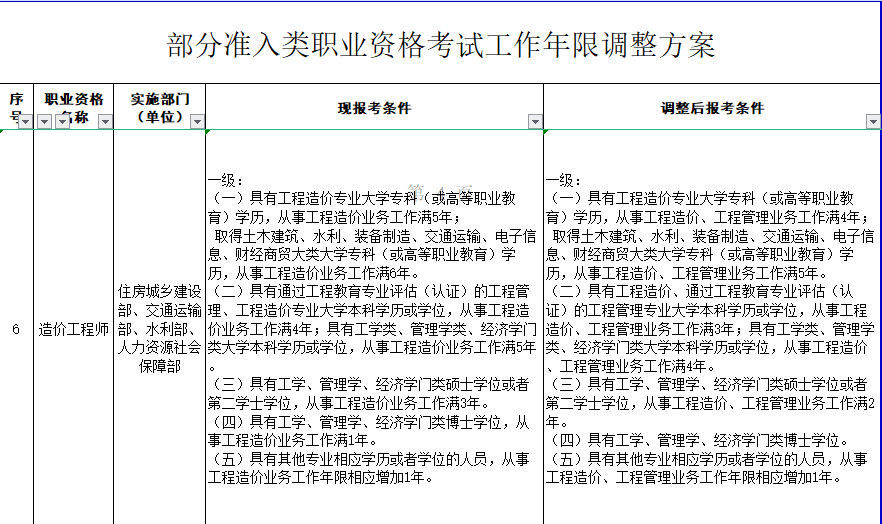 为贯彻落实《政府工作报告》要求,推动降低就业门槛,我部会同国务院有关部门研究制定了部分准入类职业资格考试工作年限调整方案。现予以公示,公示期7天。如有意见建议,请于2021年12月9日之前通过电话、电子邮件等形式反馈人力资源社会保障部专业技术人员管理司。