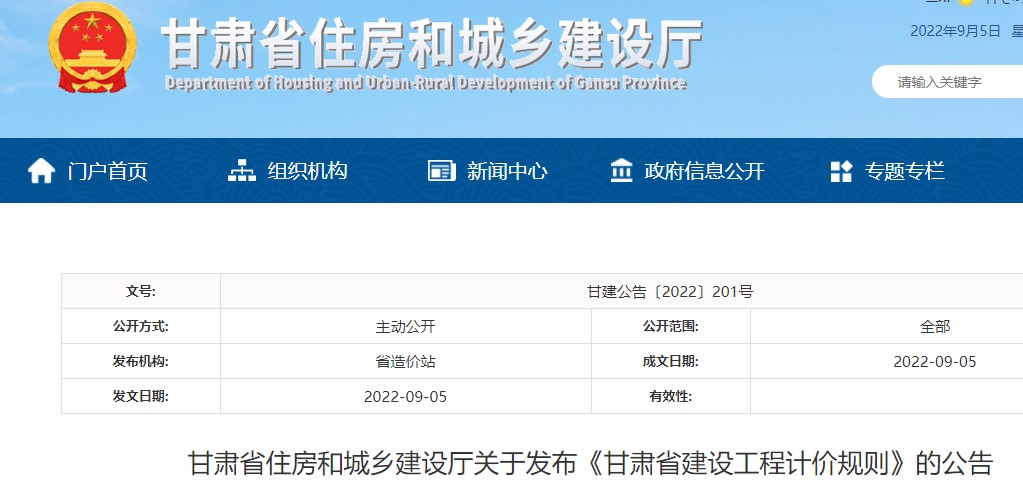 甘肃省住房和城乡建设厅关于发布《甘肃省建设工程计价规则》的公告