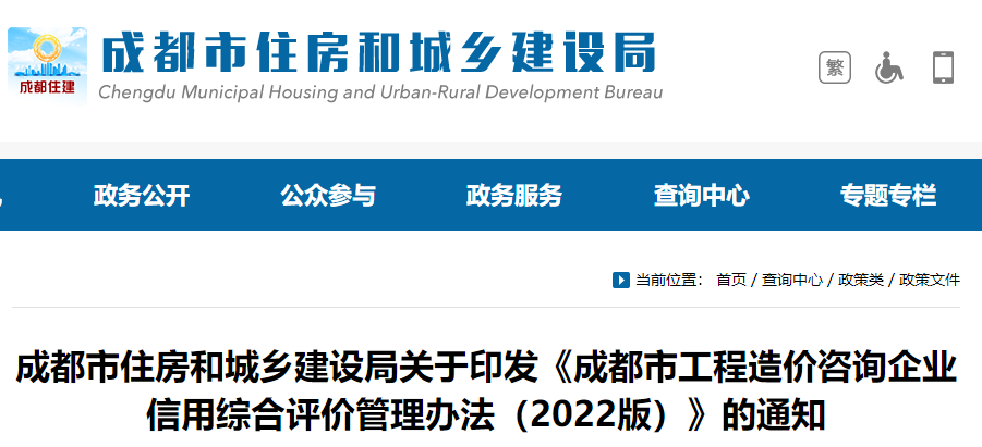 成都市住房和城乡建设局关于印发《成都市工程造价咨询企业信用综合评价管理办法(2022版)》的通知