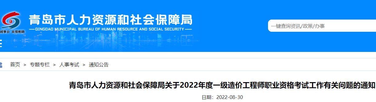 根据山东省人事考试中心《关于2022年度一级造价工程师职业资格考试考务工作有关问题的通知》(鲁人考函〔2022〕21号)文件精神,结合我市实际,现将关于2022年度一级造价工程师职业资格考试有关问题通知如下: