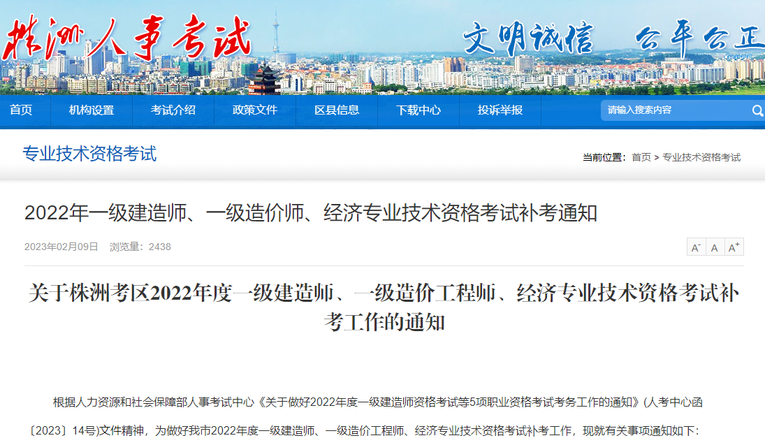 根据人力资源和社会保障部人事考试中心《关于做好2022年度一级建造师资格考试等5项职业资格考试考务工作的通知》(人考中心函〔2023〕14号)文件精神,为做好我市2022年度一级建造师、一级造价工程师、经济专业技术资格考试补考工作,现就有关事项通知如下: