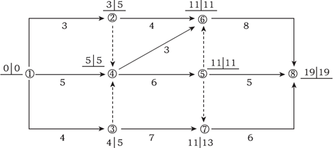 某双代号网络计划如下图所示,图中已标出各节点的最早时间和最迟时间。该计划表明()。