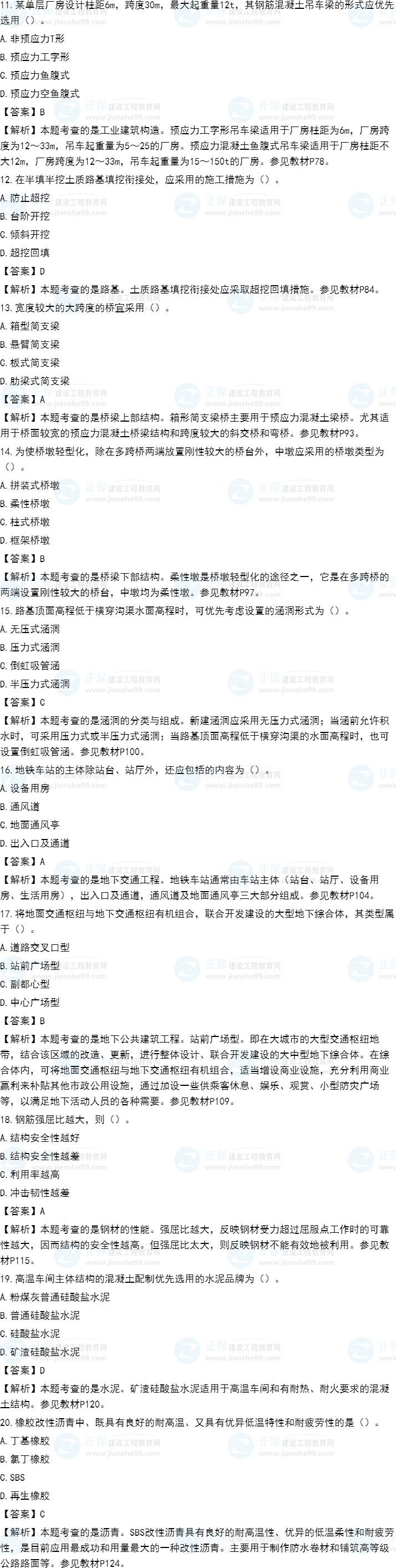 2021年一级造价师《土建计量》试题答案及解析11-20