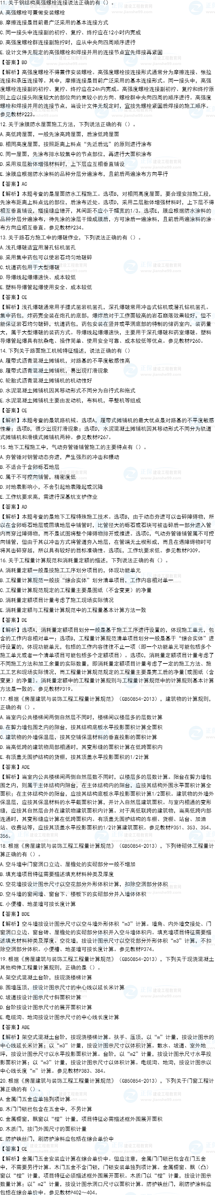 2021年一级造价师《土建计量》试题答案及解析71-80