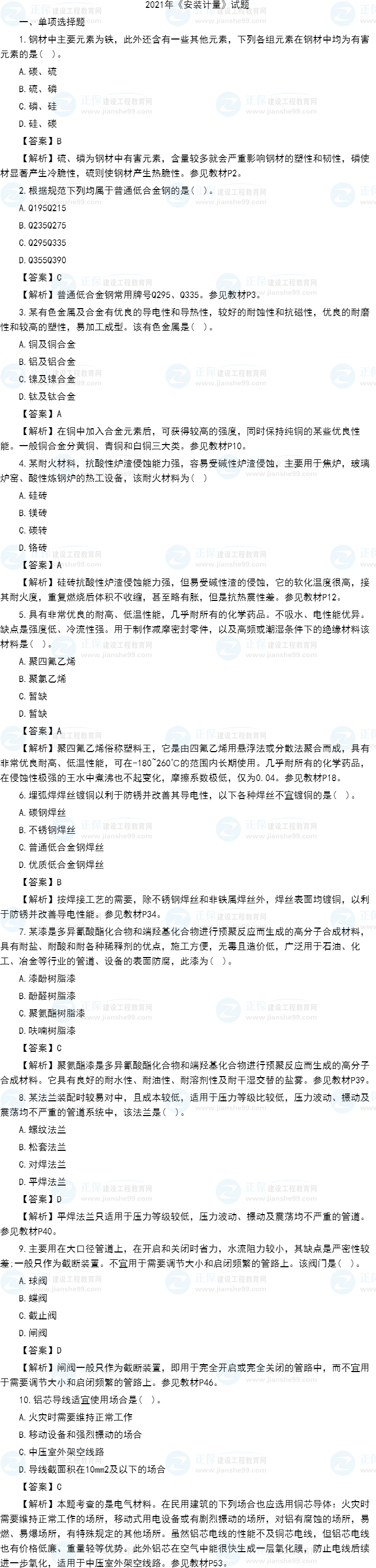 2021年一级造价师《建设工程技术与计量(安装)》考试完了,考的怎么样呢?是不是想找人交流一下考试题目的答案呢?想对答案的,可以在这里交流一下哦!这里不仅有考试试题及答案解析,还能与众多小伙伴们交流做题过程及考试心得,建设工程教育网考后根据学员反馈,及时汇总2021年一级造价师《安装计量》试题及答案分享给大家,并且会及时做出答案解析,希望能为广大一造考生朋友带来帮助。