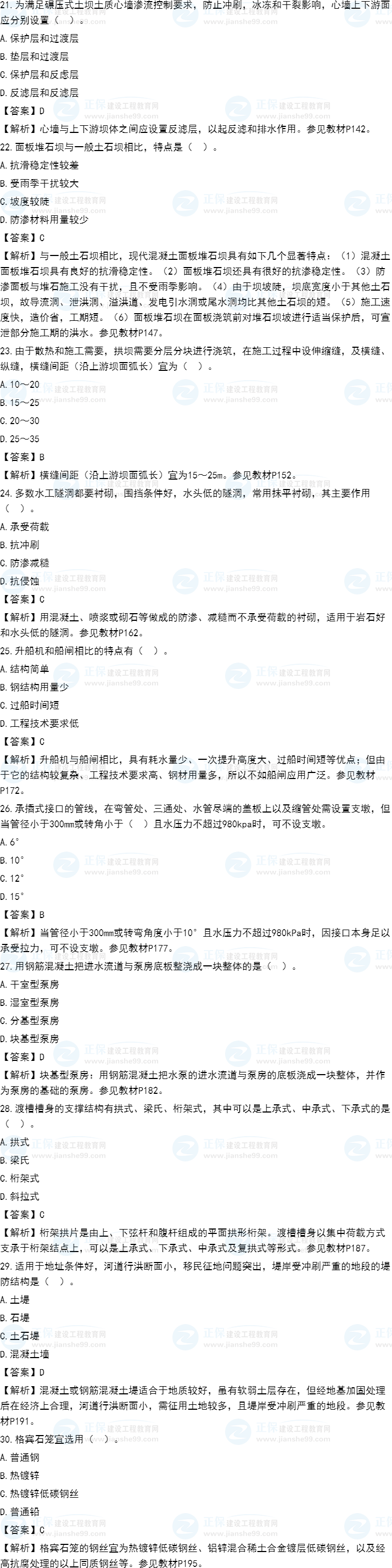2021年一级造价师《水利计量》试题答案及解析21-30