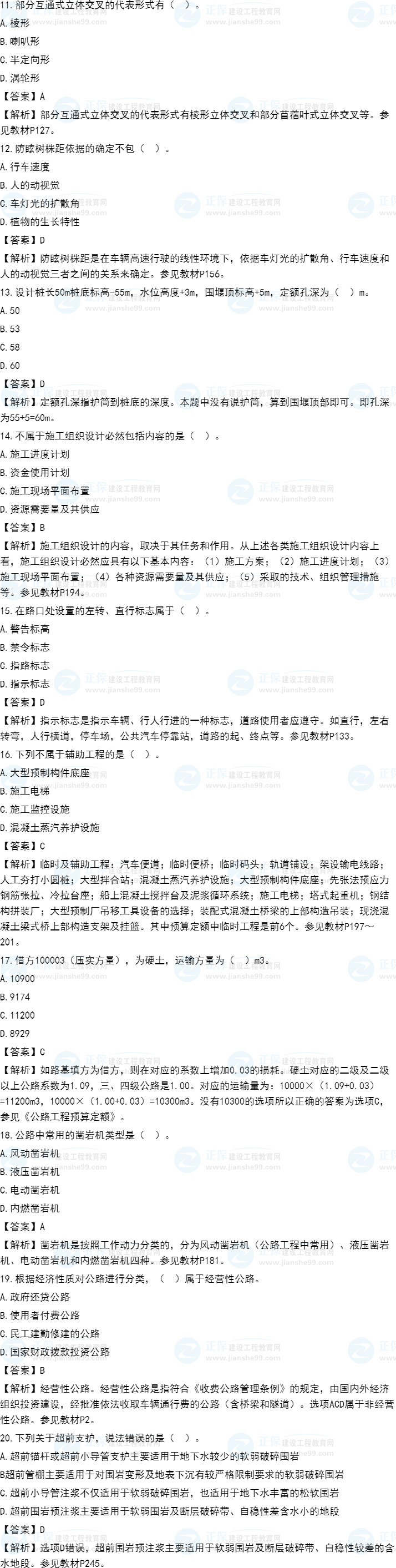 2021年一级造价师《交通计量》试题答案及解析11-20