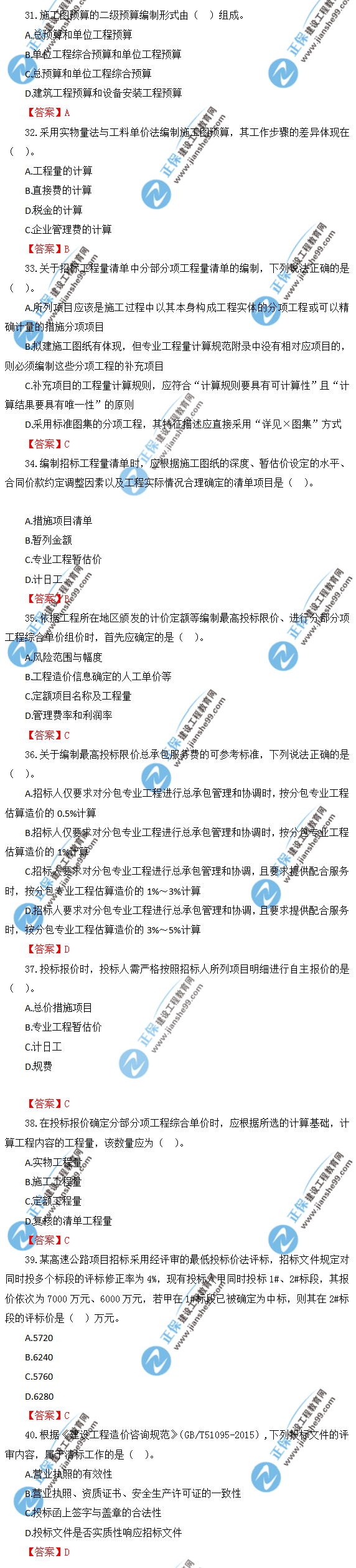 以上就是为大家分享的2019年一级造价师《建设工程计价》试题及答案解析31-40,建设工程教育网将持续关注2020年一级造价师考试的相关信息。更多2020年一级造价师考试内容,尽在建设工程教育网一级造价师栏目!