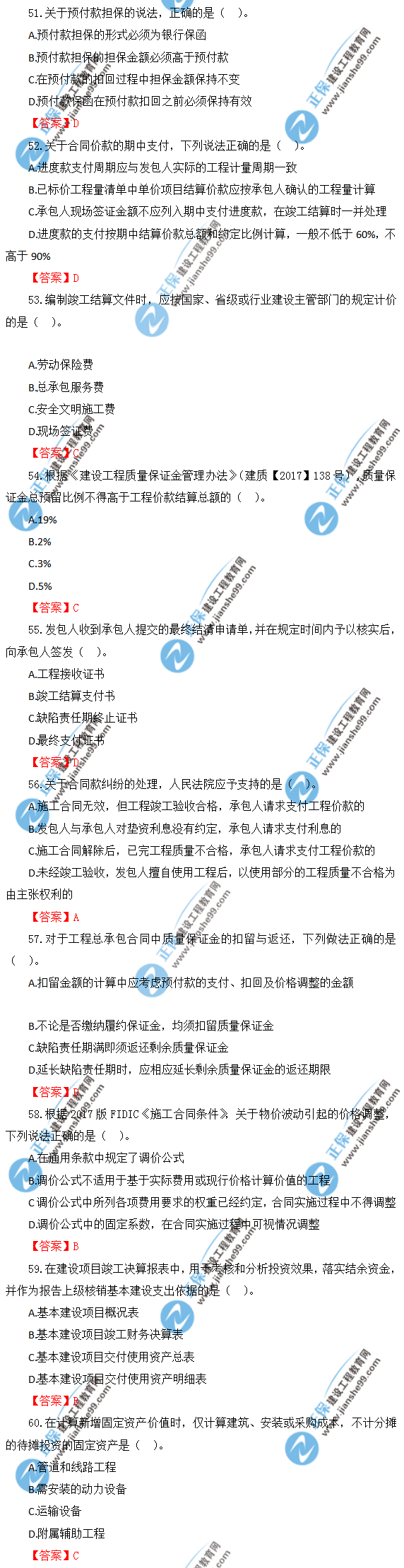 以上就是为大家分享的2019年一级造价师《建设工程计价》试题及答案解析51-60,建设工程教育网将持续关注2020年一级造价师考试的相关信息。更多2020年一级造价师考试内容,尽在建设工程教育网一级造价师栏目!