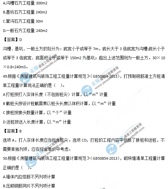以上就是为大家分享的2019年一级造价师《技术与计量(土建)》试题及答案解析41-50,建设工程教育网将持续关注2020年一级造价师考试的相关信息。更多2020年一级造价师考试内容,尽在建设工程教育网一级造价师栏目!