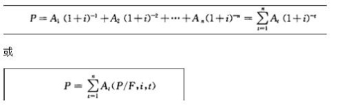 【解析】在工程实践中,多次支付是最常见的支付形式。多次支付是指现金流量在多个时点发生,而不是集中在某一时点上,如图所示。如果用At表示第t期末发生的现金流量(可正可负),用逐个折现的方法,可将多次现金流量换算成现值并求其代数和,即: