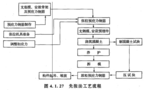 先张法预应力混凝土构件施工,其工艺流程为()