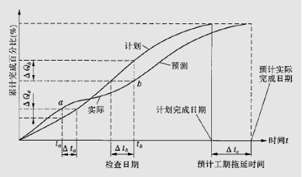B.图中b点实际进度比计划进度拖后