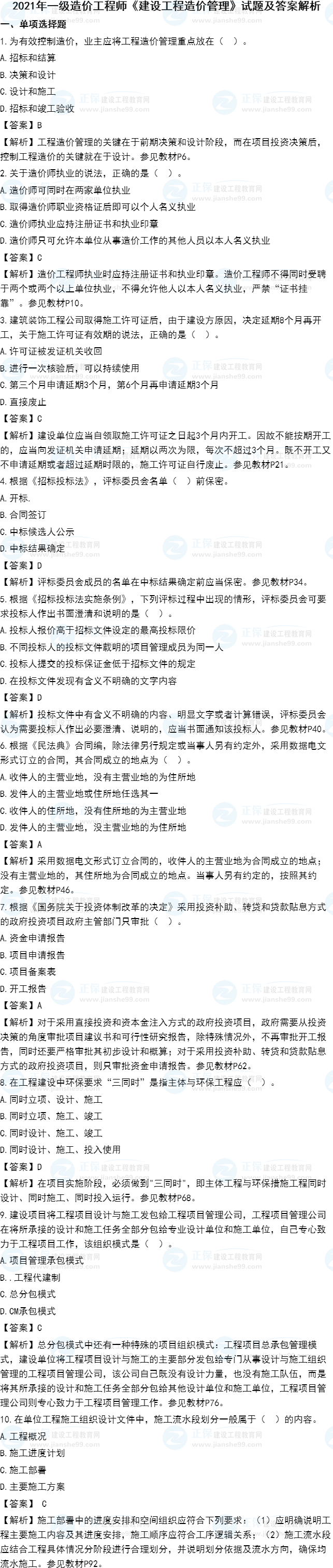 2021年一级造价师《建设工程造价管理》考完了,考的怎么样呢?是不是想找人交流一下考试题目的答案呢?想对答案的,可以在这里交流一下哦!这里不仅有考试试题及答案解析,还能与众多小伙伴们交流做题过程及考试心得,建设工程教育网考后根据学员反馈,及时汇总2021年一级造价师《建设工程造价管理》试题及答案分享给大家,并且会及时做出答案解析,希望能为广大一造考生朋友带来帮助。