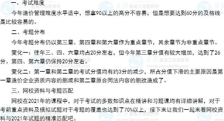 2021年一级造价工程师《建设工程造价管理》考后点评