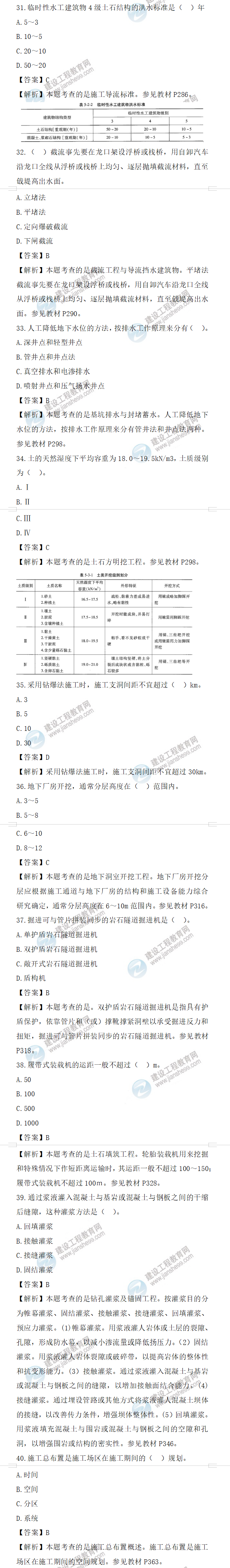 2022年一级造价师水利计量试题答案及解析31-40题