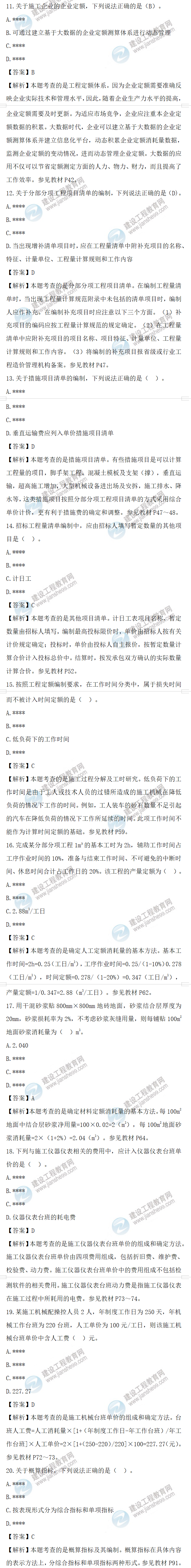 2022年一级造价师工程计价补考试题答案及解析11-20题