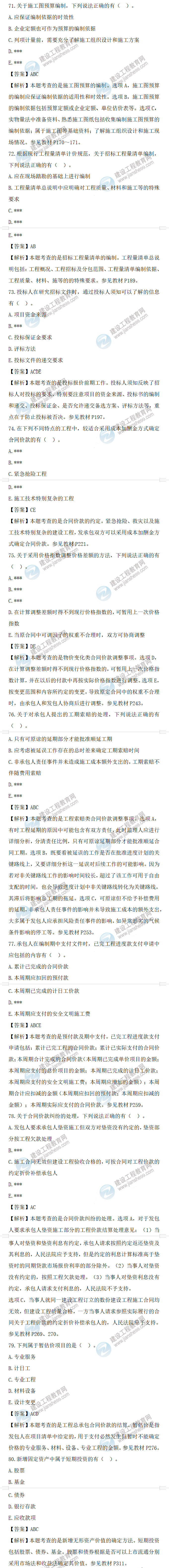 2022年一级造价师工程计价补考试题答案及解析71-80题