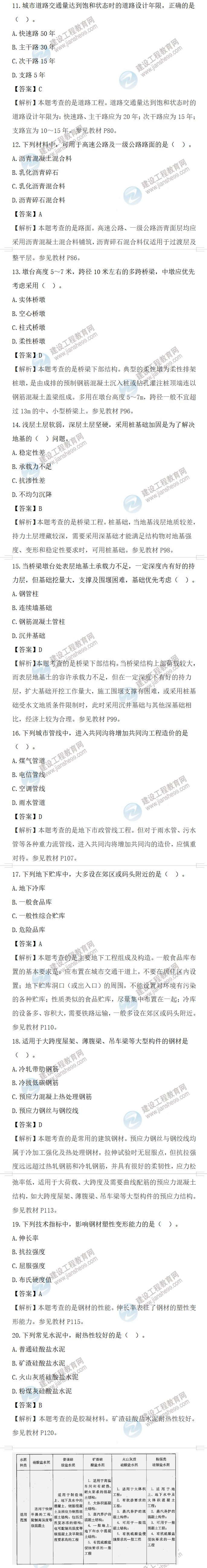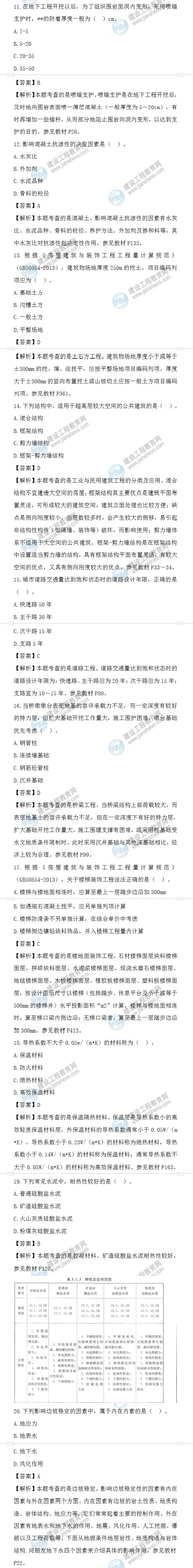 2022年一级造价师土建计量补考试题答案及解析11-20题