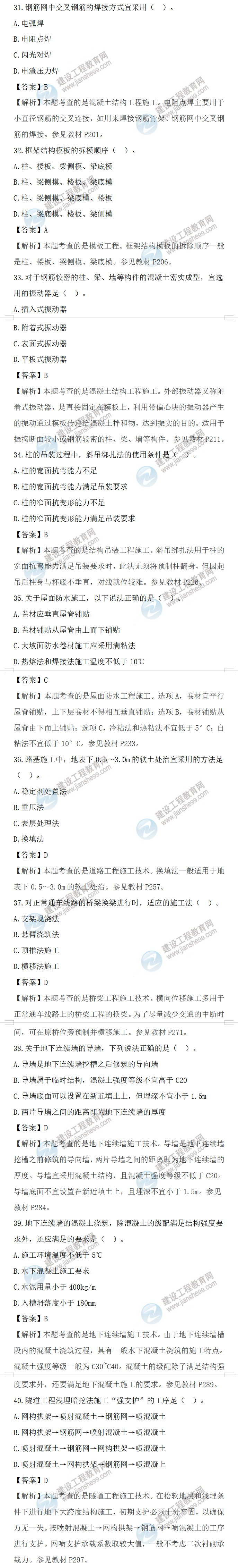 2022年一级造价师土建计量补考试题答案及解析31-40题