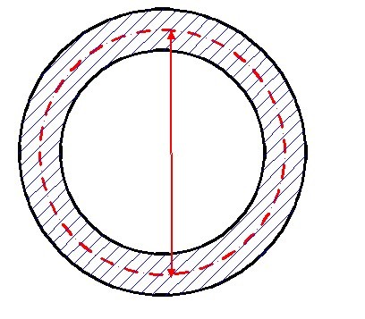 斜线是桥墩壁厚,中间的圆是空的,所以叫空心桥墩,红线是壁厚的中心线,箭头之间的距离是中面直径。