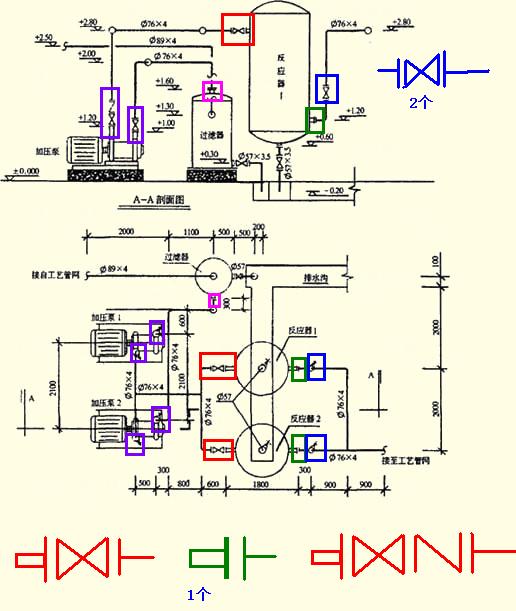 对于反应器有4+2+2个,在其左侧,出口那里每一个反应器有一个,竖直的管道上又分别有两个。