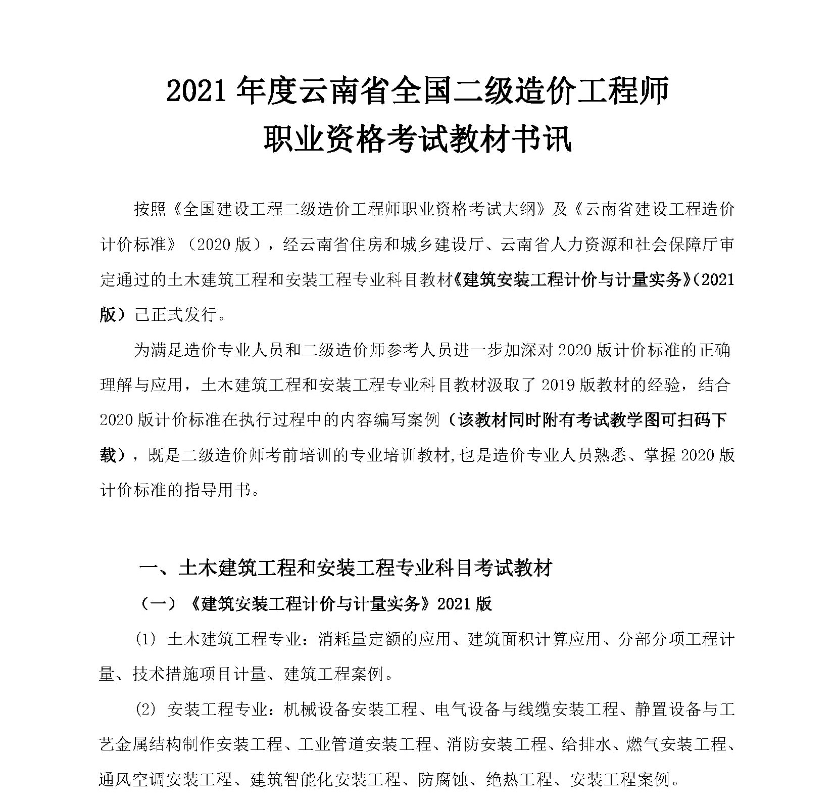 2021年云南二级造价师考试教材由云南省住房与城乡建设科技与标准定额管理网发布书讯,需要购买21云南二造教材的考生可参考该信息进行购买;此购买信息为官方发布,请根据官方渠道购买。