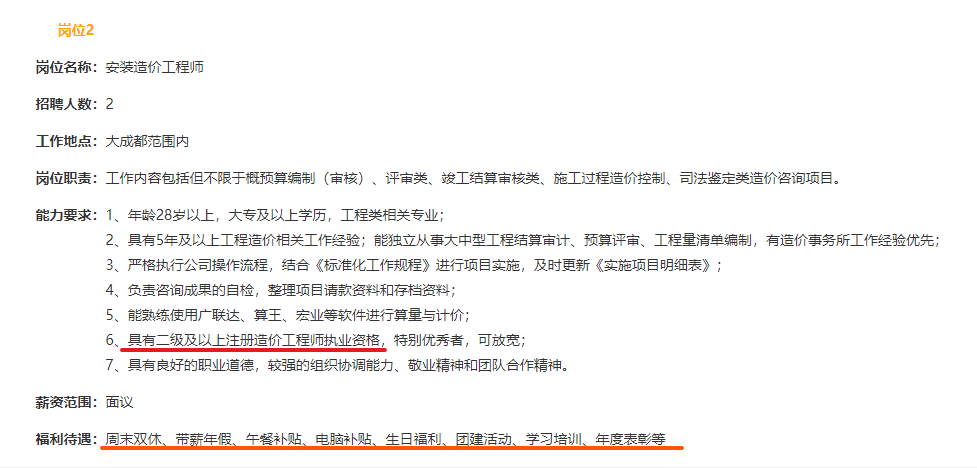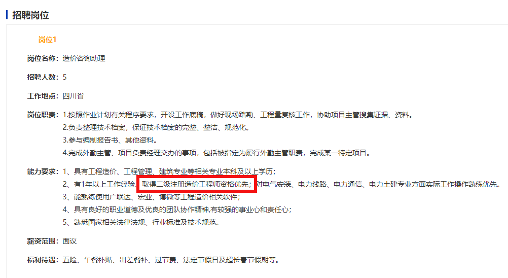 今年打开招聘软件或者各大企业官网对于造价师的招聘不少都降低了标准,持有二级造价师证书;有二级造价师证书优先录取等招聘条件已经屡见不鲜。