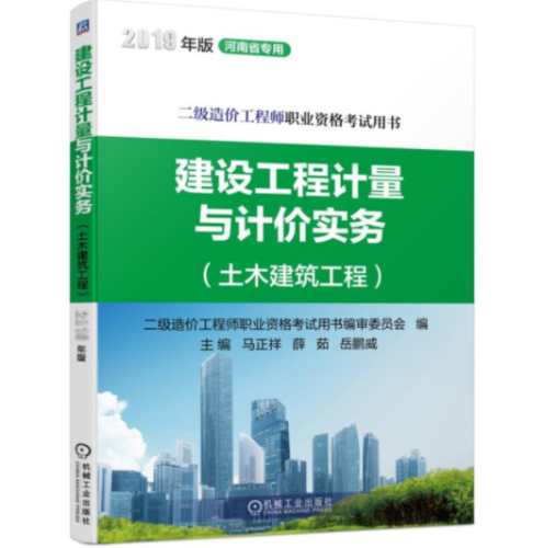 2019年河南省二级造价工程师考试培训教材《建设工程造价管理基础知识》《建设工程计量与计价实务(土木建筑工程、安装工程)》等基础、专业科目教材已由机械工业出版社出版发行。