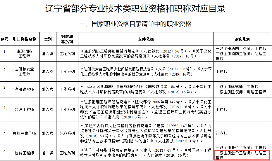 信息来自《辽宁省部分专业技术类职业资格和职称对应目录》