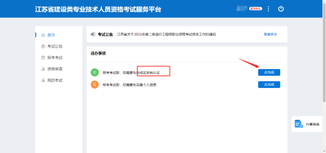 2.实名认证(输入身份证号、姓名,上传白底1寸照片提交完成实名认证),等待实名认证反馈结果。