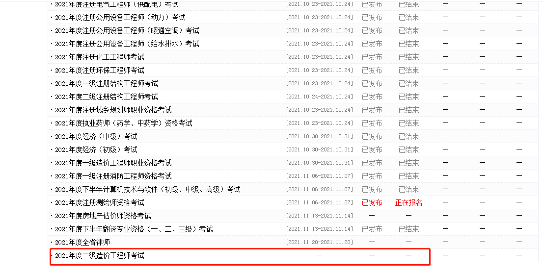 根据安徽人事考试网-专业技术栏目-考试导航中显示,2021年二级造价师考试安排排到了最后,虽然没有安排具体的考试时间,但小编预测今年安徽二造考试是一定会进行的(话不能说太满,万一没考,大家就当小编没说过);有其他看法的小伙伴,待会儿进群一起聊~