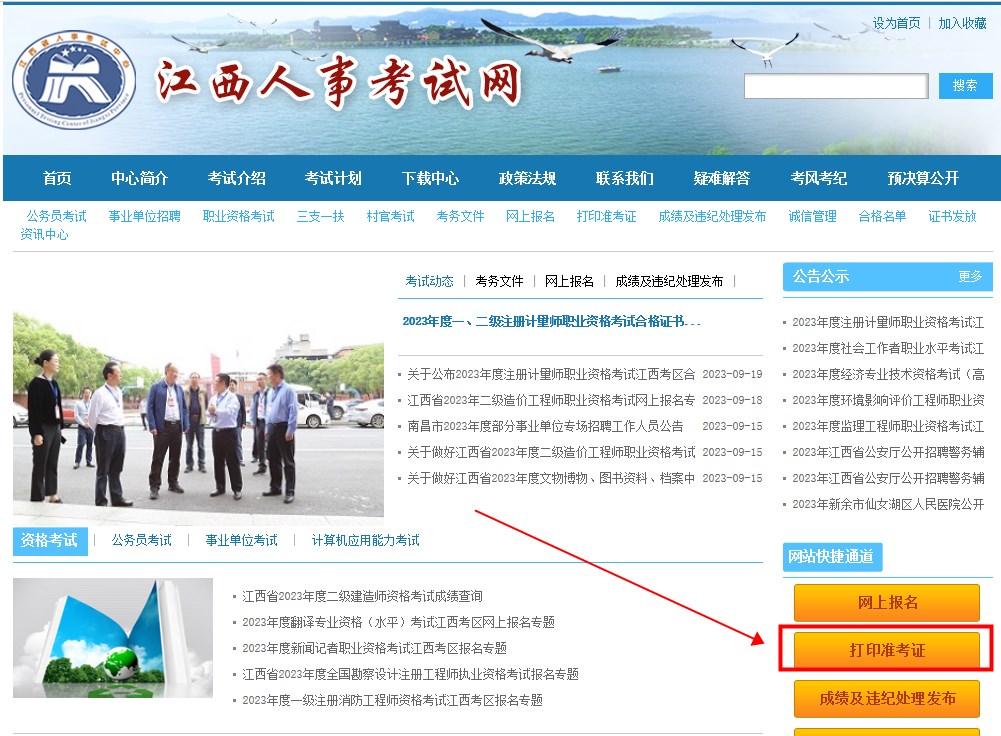 江西2023年二级造价工程师考试准考证打印入口:江西人事考试网