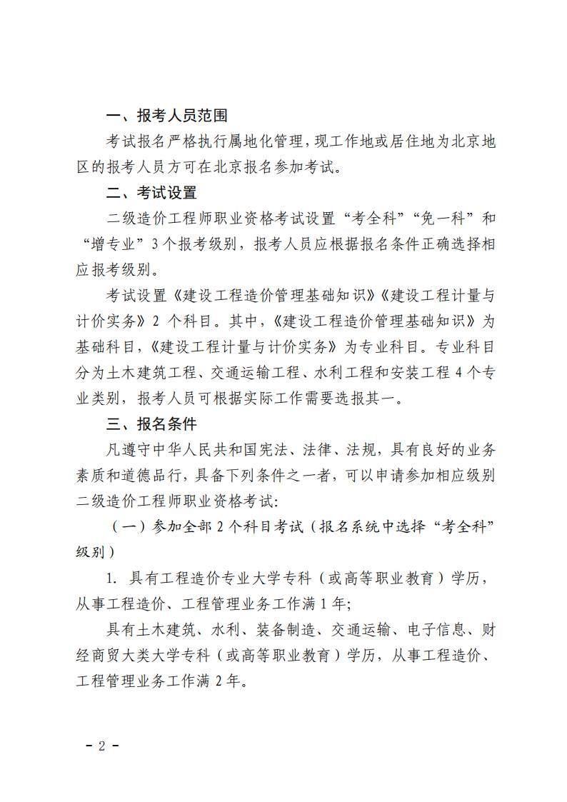 - · 关于做好北京市2024年度二级造价工程师职业资格考试工作的通知