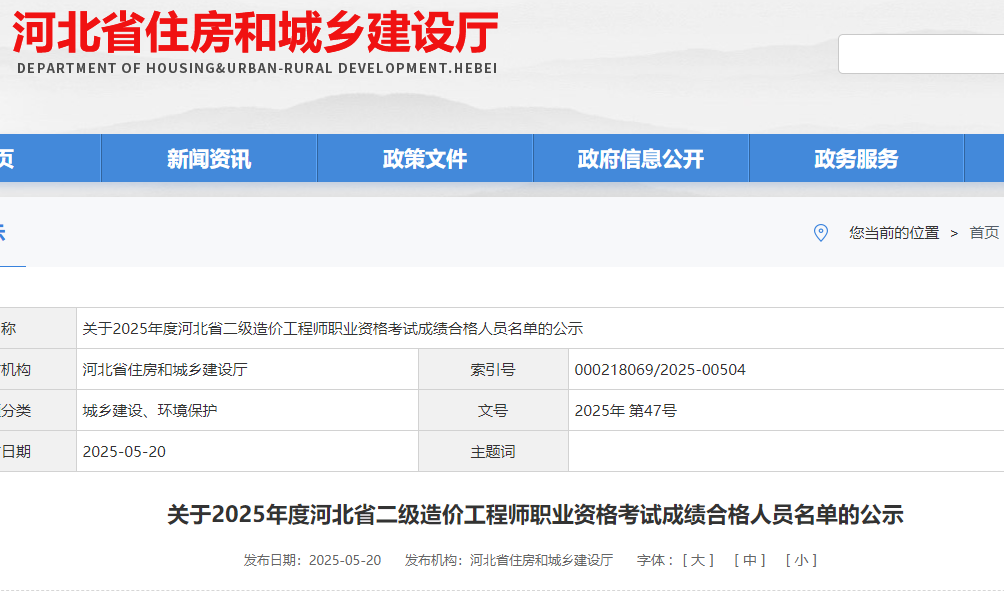 关于2025年度河北省二级造价工程师职业资格考试成绩合格人员名单的公示