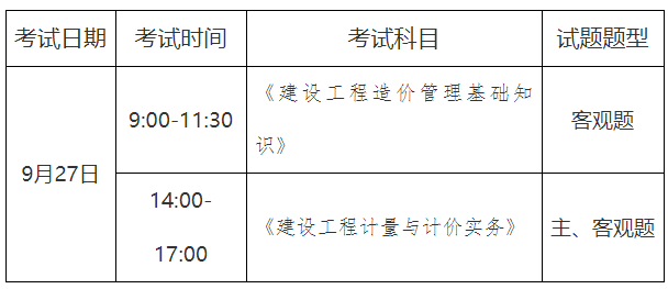 注:考试设基础科目《建设工程造价管理基础知识》、专业科目《建设工程计量与计价实务》,其中《建设工程计量与计价实务》分为土木建筑工程、交通运输工程、水利工程和安装工程4个专业类别,报考人员可选择其中一个专业类别报考。