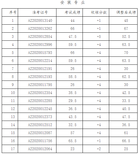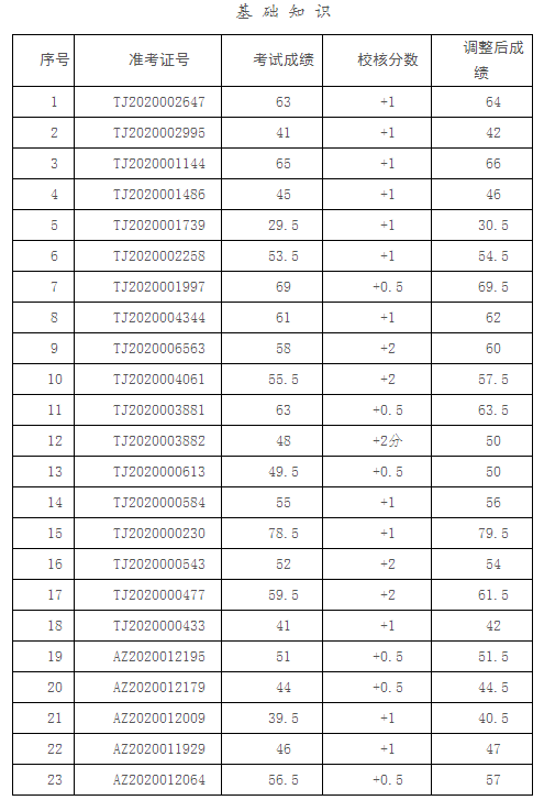附件:2020年度全国二级造价工程师(云南省)职业资格考试部分考生分数重新校核情况表