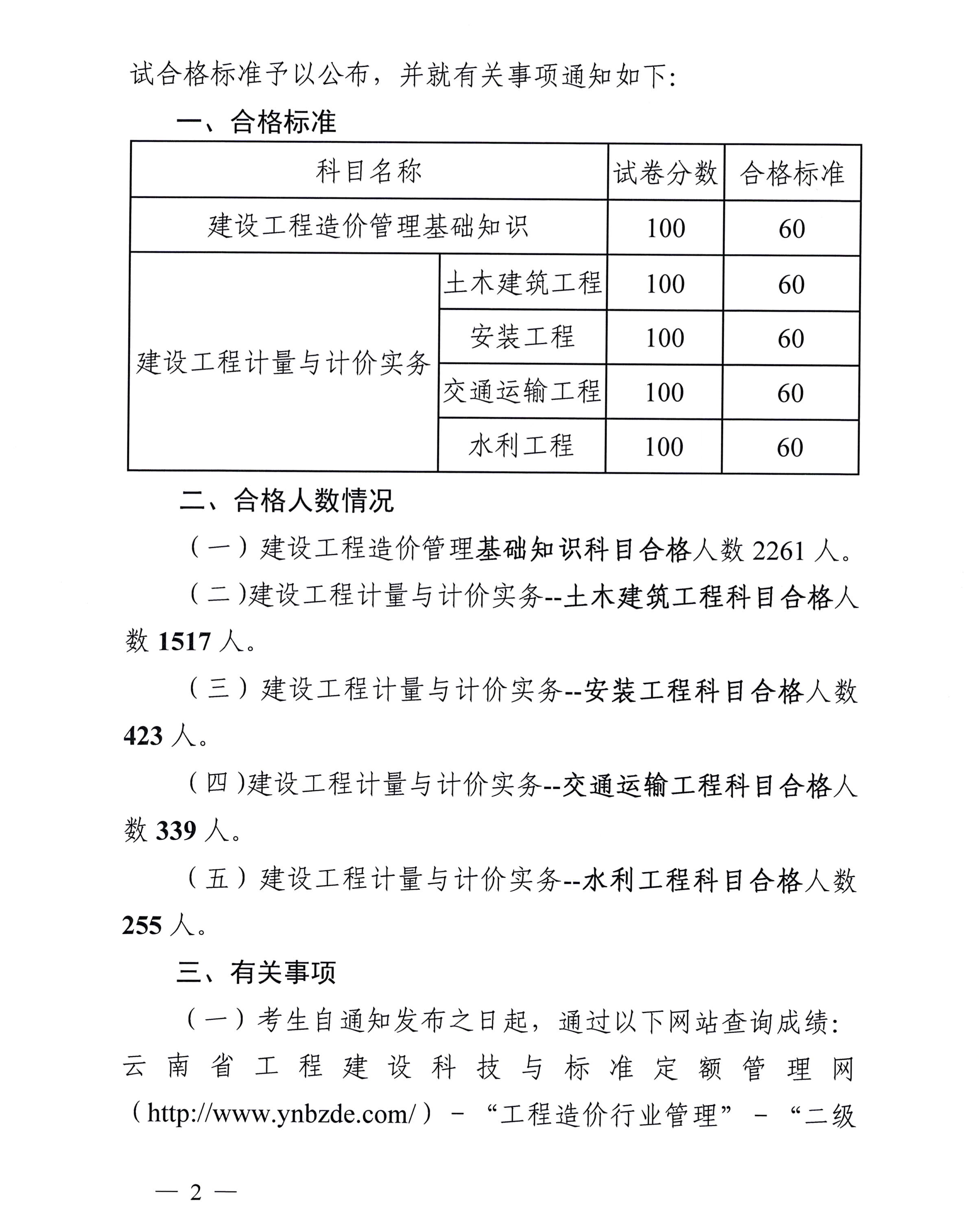- · 云南省2022年度二级造价师考试成绩合格标准均为60分