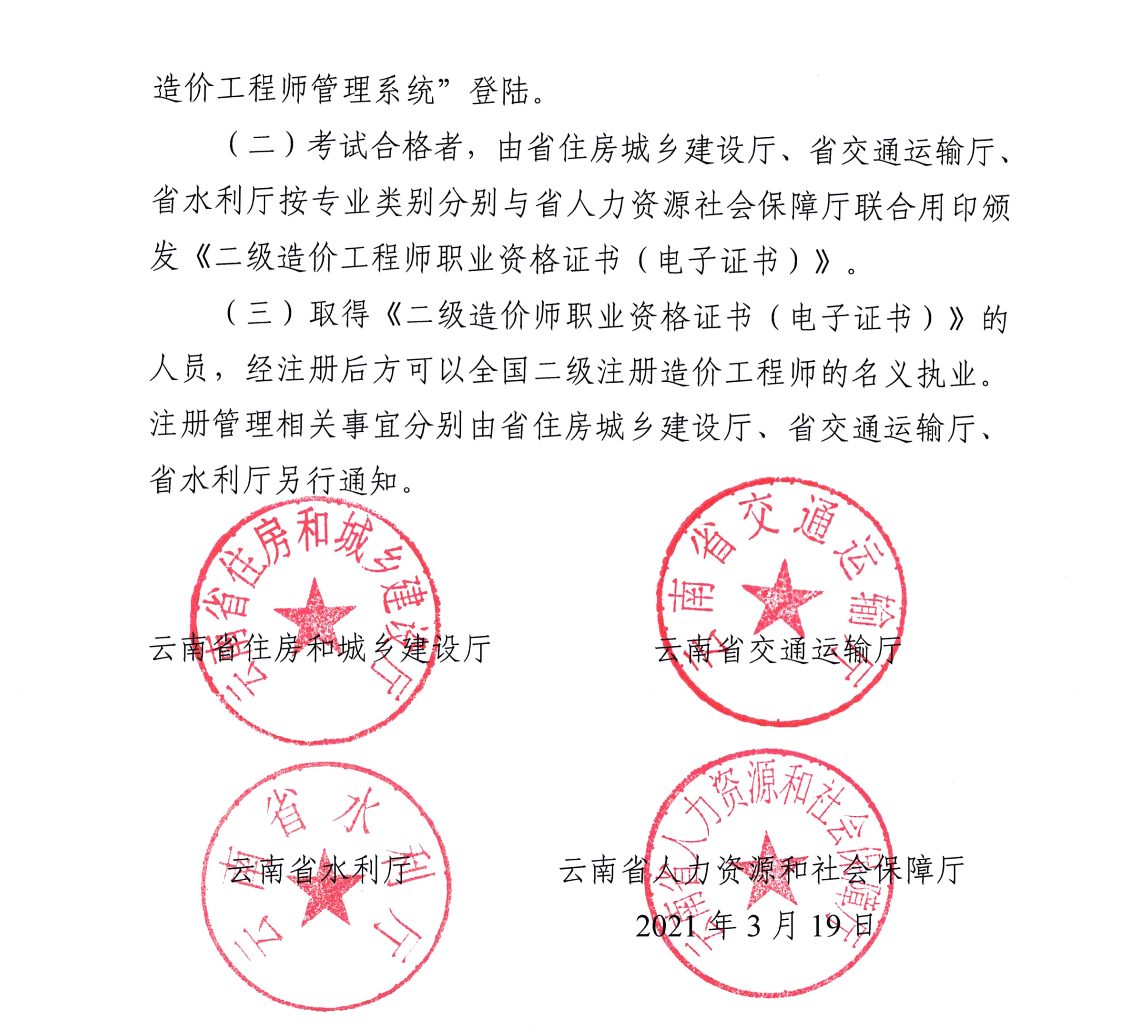 - · 关于开展云南省2023年度二级造价工程师职业资格报名考试工作的通知